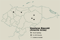 The male in the photo was taken in a backyard in Gualaco, Olancho in 1993. It has since been found in the Tawahka-Asangni Biosphere Reserve (Bonta and Anderson, 2002) and just recently in the vicinity of Cusuco N.P. by the Opwall Project at around 1,650m.
